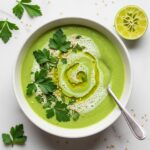 - Blend the Soup: Place cucumbers, spinach, garlic, parsley, cilantro, mint, coconut yogurt, lime juice, olive oil, maple syrup, and sea salt into a blender. Blend on high until the mixture is completely smooth and creamy.