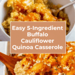 This 5-Ingredient Buffalo Cauliflower Quinoa Casserole is a flavorful, plant-based dish that combines fluffy quinoa, spicy buffalo sauce, and tender cauliflower florets for a healthy, comforting meal. Topped optionally with vegan cheese and nutritional yeast, this casserole is perfect for a quick dinner or meal prep with minimal ingredients and easy preparation.