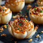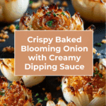 This baked blooming onion recipe delivers a crispy, golden appetizer that’s perfect for sharing. Using sweet Vidalia onions coated in a flavorful seasoned flour, eggs, and panko breadcrumb mixture, then baked to perfection rather than fried, this version is lighter but still indulgently delicious. Paired with a creamy, tangy dipping sauce, it’s a crowd-pleaser ideal for parties or a fun family snack.