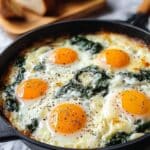 Keywords: Baked Eggs Florentine, spinach and eggs, baked breakfast, brunch recipe, creamy spinach eggs, Parmesan cheese, mozzarella cheese, easy baked eggs