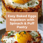 Baked Eggs Napoleon is a delicious and elegant brunch recipe featuring flaky puff pastry shells filled with creamy spinach and topped with perfectly baked eggs. This easy-to-make dish combines savory flavors and a delightful texture contrast, making it a perfect choice for a special weekend breakfast or brunch gathering.