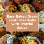 Keywords: Greek lentil meatballs, vegetarian meatballs, baked lentil balls, tzatziki sauce, healthy Greek recipes, meatless main course, plant-based, Mediterranean diet