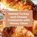 These Baked Turkey and Cheese Croissants are a delicious and savory treat perfect for breakfast, lunch, or a satisfying snack. Flaky French croissants are layered with turkey and melted Gruyère or Swiss cheese, then brushed with a sweet and tangy honey-Dijon glaze and baked to golden perfection. Finished with a sprinkle of poppy seeds and fresh green onions, these croissants offer an irresistible combination of flavors and textures.