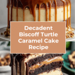 Indulge in the rich and decadent Biscoff Turtle Caramel Cake, featuring moist chocolate cake layers, creamy Biscoff cookie butter frosting, luscious caramel sauce, toasted pecans, and a silky chocolate ganache drizzle. Perfect for birthdays or any special occasion, this cake combines textures and flavors that satisfy any sweet tooth craving.
