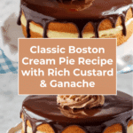 Keywords: Boston Cream Pie recipe, classic dessert, vanilla custard, chocolate ganache, layered cake, homemade Boston Cream Pie