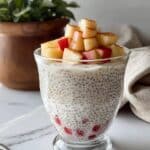 This Caramel Apple Chia Pudding with Cinnamon and Yogurt is a nutritious, creamy, and delicious breakfast or snack option. Made with Greek yogurt, almond milk, dates, maple syrup, cinnamon, diced apples, and chia seeds, this pudding blends natural sweetness and spice for a cozy fall flavor. It’s easy to prepare, requires no cooking, and is perfect for meal prep.