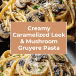 Keywords: Caramelized leek pasta, mushroom pasta, Gruyere cheese pasta, creamy pasta recipe, vegetarian pasta, easy stovetop pasta, comfort food