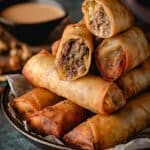 Cheeseburger spring rolls combine all the flavors of a classic cheeseburger wrapped in a crispy spring roll shell. These are perfect for a fun appetizer or a tasty snack that’s easy to share and full of savory goodness.