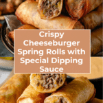 Keywords: Cheeseburger spring rolls, deep-fried spring rolls, cheeseburger recipe, party appetizers, snack recipes, beef spring rolls