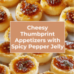 These Cheesy Thumbprint Appetizers with Hot Pepper Jelly are easy to make and perfect for any party. Crispy, cheesy, and bursting with a sweet-spicy kick, they’re elegant bites that everyone will love.