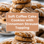 These Coffee Cake Cookies combine the tender, soft texture of classic coffee cake with the convenience and individual portions of cookies. Featuring a buttery cake flour base, a crumbly cinnamon streusel topping, and a sweet vanilla glaze, these cookies offer the perfect balance of flavors and textures. Ideal for breakfast treats, coffee breaks, or dessert, they deliver the nostalgic coffee cake experience in a handheld delight.
