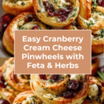 Cranberry Cream Cheese Pinwheels with Feta & Herbs make a delightful appetizer perfect for gatherings or a tasty snack. These golden puff pastry bites combine tangy cream cheese, savory feta, fresh herbs, and bursts of cranberry for a flavorful treat.