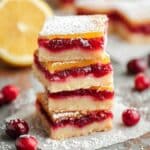 Keywords: cranberry lemon bars, cranberry dessert, lemon bars, holiday dessert, shortbread crust, tangy dessert