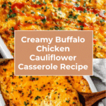 This Creamy Buffalo Chicken Cauliflower Casserole is a flavorful, comforting dish that combines tender chicken with spicy buffalo sauce and cheesy goodness. It’s a great low-carb option that’s perfect for weeknight dinners or game day gatherings.