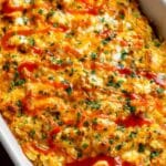 This Creamy Buffalo Chicken Cauliflower Casserole is a delicious and low-carb twist on classic buffalo chicken dishes. Combining tender chicken, spicy buffalo sauce, and creamy cheeses with nutritious riced cauliflower, this casserole is perfect for a comforting and satisfying meal that packs flavor without the carbs.