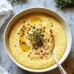 This Creamy Italian Polenta with Parmesan is a comforting, smooth, and cheesy dish made by simmering cornmeal in a savory broth and milk base, infused with garlic and enhanced with parmesan cheese. It makes a perfect side dish or a base for various toppings, delivering a rich and velvety texture with mild herbs and a slight kick of red pepper flakes.