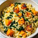 This Creamy Orzo with Roasted Butternut Squash and Spinach is a comforting and flavorful dish combining tender roasted butternut squash, creamy Parmesan-infused orzo, and vibrant spinach. It’s perfect as a satisfying vegetarian main or a hearty side, blending roasted sweetness with rich, cheesy creaminess.