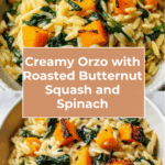 Keywords: creamy orzo, roasted butternut squash, spinach, vegetarian pasta, Parmesan orzo, comforting dinner, easy weeknight meal