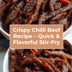 Crispy Chilli Beef is a flavorful and satisfying dish that combines tender, crunchy steak strips with a tangy, sweet, and spicy Chinese-style garlic sauce. It’s perfect for a quick weeknight dinner or when you’re craving something with a punch of flavor.