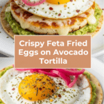 Keywords: crispy feta fried eggs, fried eggs with feta, avocado tortilla breakfast, Mediterranean breakfast, easy egg recipe