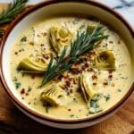 This Delightful Creamy Lemony Tuscan Artichoke Soup is a smooth and flavorful soup combining the earthiness of artichokes with the bright zest of fresh lemon. Perfectly creamy with a luscious texture, this Italian-inspired soup is easy to prepare on the stovetop using simple ingredients like garlic, onion, and aromatic herbs. It’s a comforting dish ideal for chilly days or as an elegant starter.