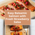 This Easy Balsamic Salmon with Strawberry Salsa is a delightful and healthy dish featuring tender, oven-baked salmon glazed with tangy balsamic vinegar and topped with a fresh, zesty strawberry salsa. Perfect for a quick dinner, this recipe combines the rich flavors of salmon with the sweet and slightly spicy notes of strawberry salsa, making it a vibrant and nutritious meal.