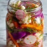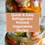 This easy refrigerator pickled vegetables recipe offers a quick and tangy way to enjoy crisp, vibrant veggies. Perfect as a snack or a flavorful addition to meals, these pickles require no canning and are ready in just a day.