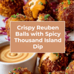These Easy Reuben Balls are a delicious and crispy appetizer that combines chopped corned beef, sauerkraut, and Swiss cheese, all rolled into bite-sized balls and fried to golden perfection. Served with a spicy Thousand Island dip, they make a perfect party snack or game day treat with a classic Reuben sandwich flavor in every bite.