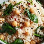 This easy vegetarian spinach chickpea rice recipe is packed with bold flavors and wholesome ingredients. Perfect for a quick weeknight dinner, it combines fragrant basmati rice, nutritious chickpeas, and vibrant spinach for a satisfying meal that’s both healthy and delicious.