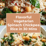This Easy Vegetarian Spinach Chickpea Rice recipe is a flavorful, hearty one-pan meal perfect for bold flavor fans. Combining fragrant basmati rice, protein-rich chickpeas, and fresh spinach with a warm spice blend, it delivers a balanced and vibrant dish that’s quick to prepare and packed with nutrients. Ideal for a wholesome lunch or dinner, this recipe highlights simple ingredients that come together beautifully in a large skillet for a tasty and colorful meal.