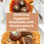 Keywords: eggplant meatballs, vegetarian meatballs, baked meatballs, mushroom meatballs, Italian vegetarian recipe, healthy meatball alternative