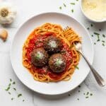 These Eggplant Meatballs are a delicious vegetarian alternative to traditional meatballs, packed with roasted eggplant, savory baby Bella mushrooms, garlic, and a blend of Italian seasonings. Coated with parmesan cheese, cashews, and breadcrumbs, then baked to perfection, they’re perfect served with your favorite tomato sauce and fresh herbs for a comforting and flavorful meal.