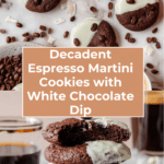 Keywords: Espresso Martini Cookies, coffee cookies, chocolate espresso cookies, white chocolate dipped cookies, cocktail inspired dessert