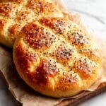 Keywords: Turkish bread, Pide bread, flatbread, homemade bread, yeast bread, sesame seeds, nigella seeds, soft bread, easy bread recipe