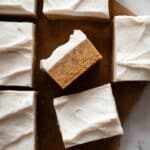- Frost the Brownies: Spread the gingerbread ermine frosting evenly over the cooled gingerbread brownies. Slice into squares and serve to enjoy the perfect spiced treat.