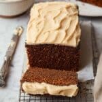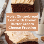 Keywords: gingerbread loaf, brown butter frosting, holiday bread, spiced bread, cream cheese frosting, molasses loaf, gingerbread recipe
