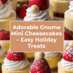These Gnome Mini Cheesecakes are an adorable and festive no-bake dessert, perfect for holiday gatherings. With a creamy cheesecake filling, buttery graham cracker crust, and charming strawberry gnome hats, they’re sure to delight both kids and adults alike.