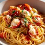 Store any leftover lobster pasta in an airtight container in the refrigerator for up to 2 days. Reheat gently in a pan with a splash of cream or water to loosen the sauce and avoid drying out the lobster. It’s best enjoyed fresh due to the delicate seafood flavors.