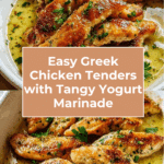 Keywords: Greek chicken tenders, grilled chicken, baked chicken, Greek yogurt marinade, Mediterranean chicken, healthy chicken recipe