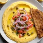 Greek Fava is a traditional yellow split pea dip that is creamy, flavorful, and rich in nutrients. Made by simmering yellow split peas with aromatics and then blending them to a smooth consistency, this dish is garnished with fresh vegetables and tangy lemon juice for a perfect appetizer or side dish. It’s nutritious, vegan, and perfect served warm or at room temperature with some extra virgin olive oil and fresh lemon.