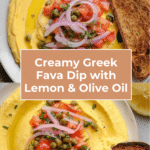 Keywords: Greek Fava, yellow split pea dip, fava beans, vegan dip, Greek appetizer, vegetarian, healthy dip, Mediterranean recipe