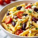 This Greek Pasta with Feta & Olives is a vibrant and easy-to-make dish that combines fresh Mediterranean flavors in every bite. Perfect for a quick weeknight dinner or a light lunch, it features tender pasta tossed with juicy tomatoes, salty olives, and creamy feta cheese.