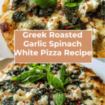 This Greek Roasted Garlic Spinach White Pizza is a savory and delightful Mediterranean-inspired dish featuring a crispy crust topped with a creamy roasted garlic and ricotta sauce, sautéed spinach, and a blend of three cheeses. Finished with fresh basil and a touch of spice, it’s a perfect vegetarian meal for any occasion.