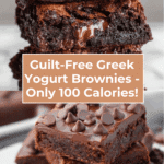 Keywords: Greek Yogurt Brownies, low calorie brownies, healthy brownies, chocolate yogurt brownies, easy brownie recipe, guilt-free dessert