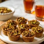 These Healthier Vegan Baklava Cups are a delightful twist on the traditional Middle Eastern dessert. Made with oat flour and coconut oil for a wholesome base, layered with a rich almond frangipane, and topped with a fragrant pistachio mixture infused with warm spices and floral waters, these mini treats are naturally sweetened with maple syrup and baked to golden perfection. Perfect for a gluten-free, vegan-friendly indulgence that satisfies your sweet tooth with wholesome ingredients.