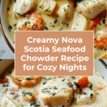 Hearty Nova Scotia Seafood Chowder is a comforting blend of fresh seafood and creamy broth, perfect for cozy nights in. This chowder combines tender white fish, shrimp, scallops, and mussels with potatoes and aromatic herbs for a satisfying meal.
