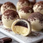 These Irresistible Tiramisu Truffles combine the classic flavors of the beloved Italian dessert in a bite-sized treat. Creamy mascarpone, crushed ladyfingers, espresso, and vanilla form a luscious dough that’s chilled, rolled, and dipped in rich melted chocolate. Finished with a dusting of cocoa powder, these elegant truffles are perfect for special occasions or an indulgent everyday snack.