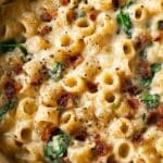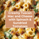 Keywords: Tuscan mac and cheese, creamy mac and cheese, spinach mac and cheese, sundried tomato pasta, Italian mac and cheese, comfort food, baked mac and cheese