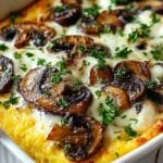 This irresistibly smooth Mushroom Polenta Casserole is a comforting and hearty dish perfect for cozy dinners. Quick-cooking polenta is combined with a savory sauté of assorted mushrooms, aromatic herbs, and a blend of mozzarella and Parmesan cheeses, then baked to golden perfection. It’s creamy, flavorful, and makes a wonderful vegetarian main or side dish.