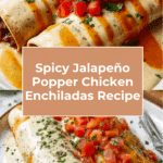 Keywords: jalapeño popper enchiladas, cheesy chicken enchiladas, spicy chicken enchiladas, creamy enchiladas, Mexican chicken recipe, baked enchiladas